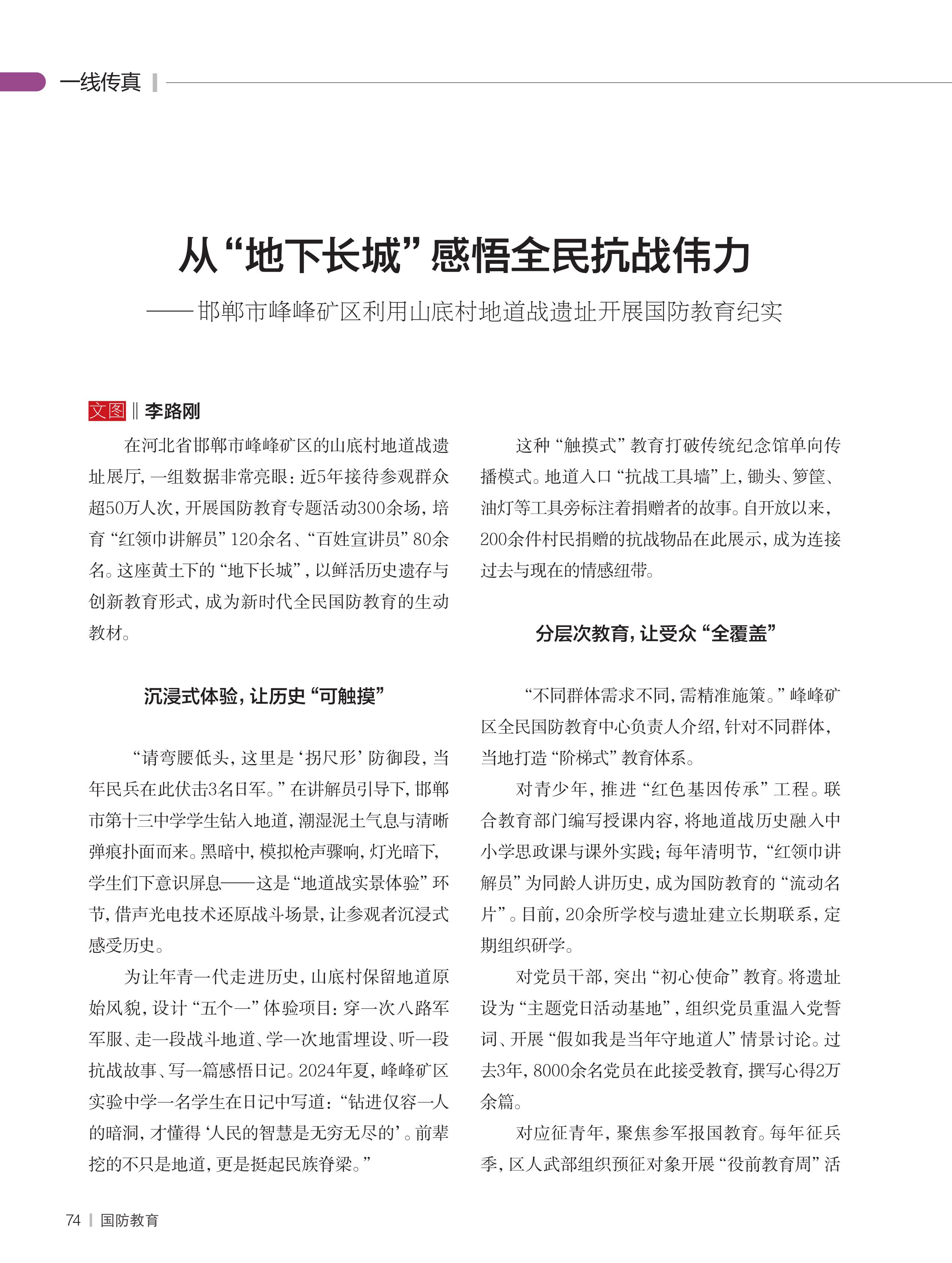 ——邯鄲市峰峰礦區(qū)利用山底村地道戰(zhàn)遺址開展國防教育紀實