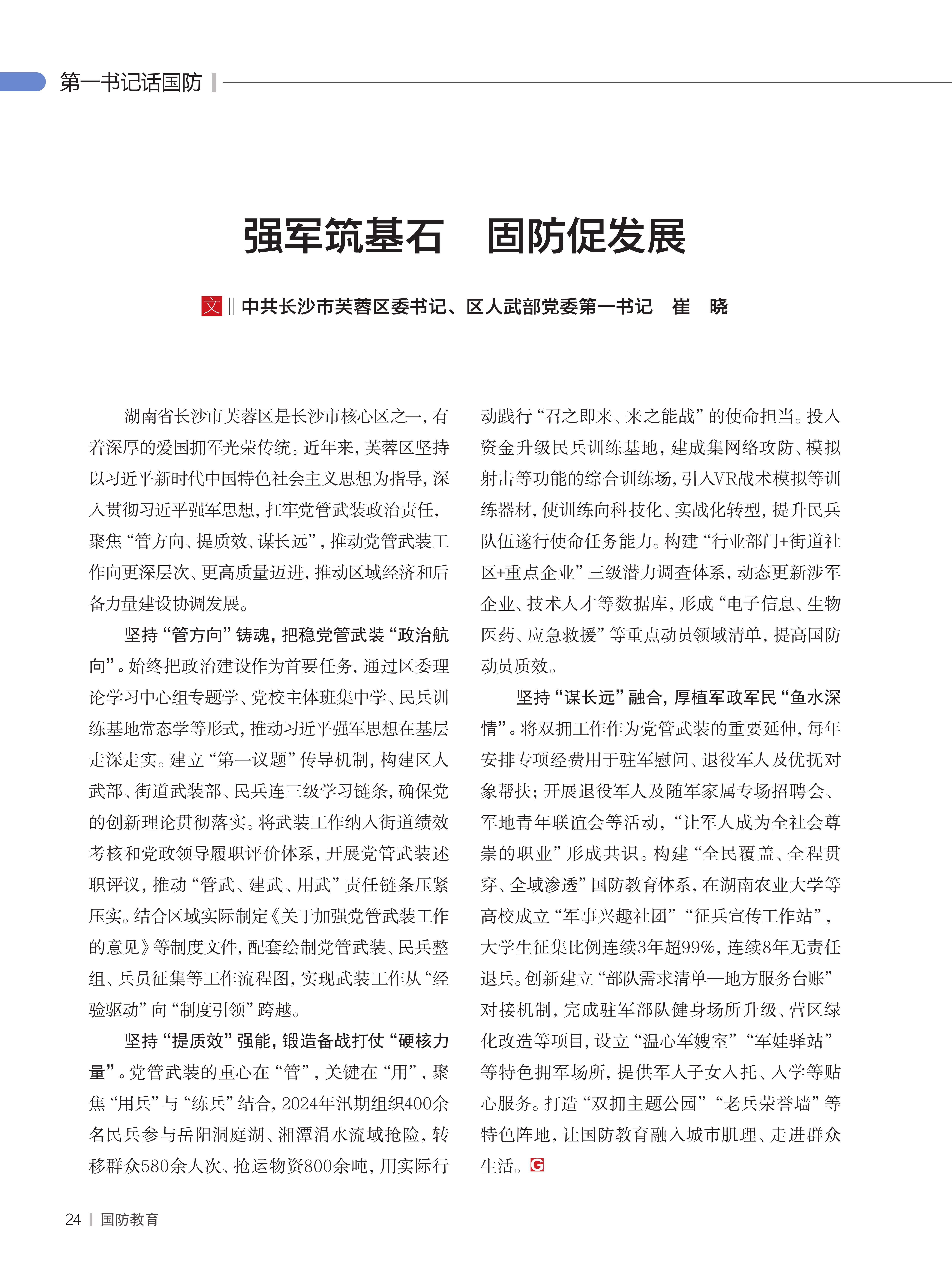 作者:中共長沙市芙蓉區(qū)委書記 區(qū)人武部黨委第一書記? 崔? 曉