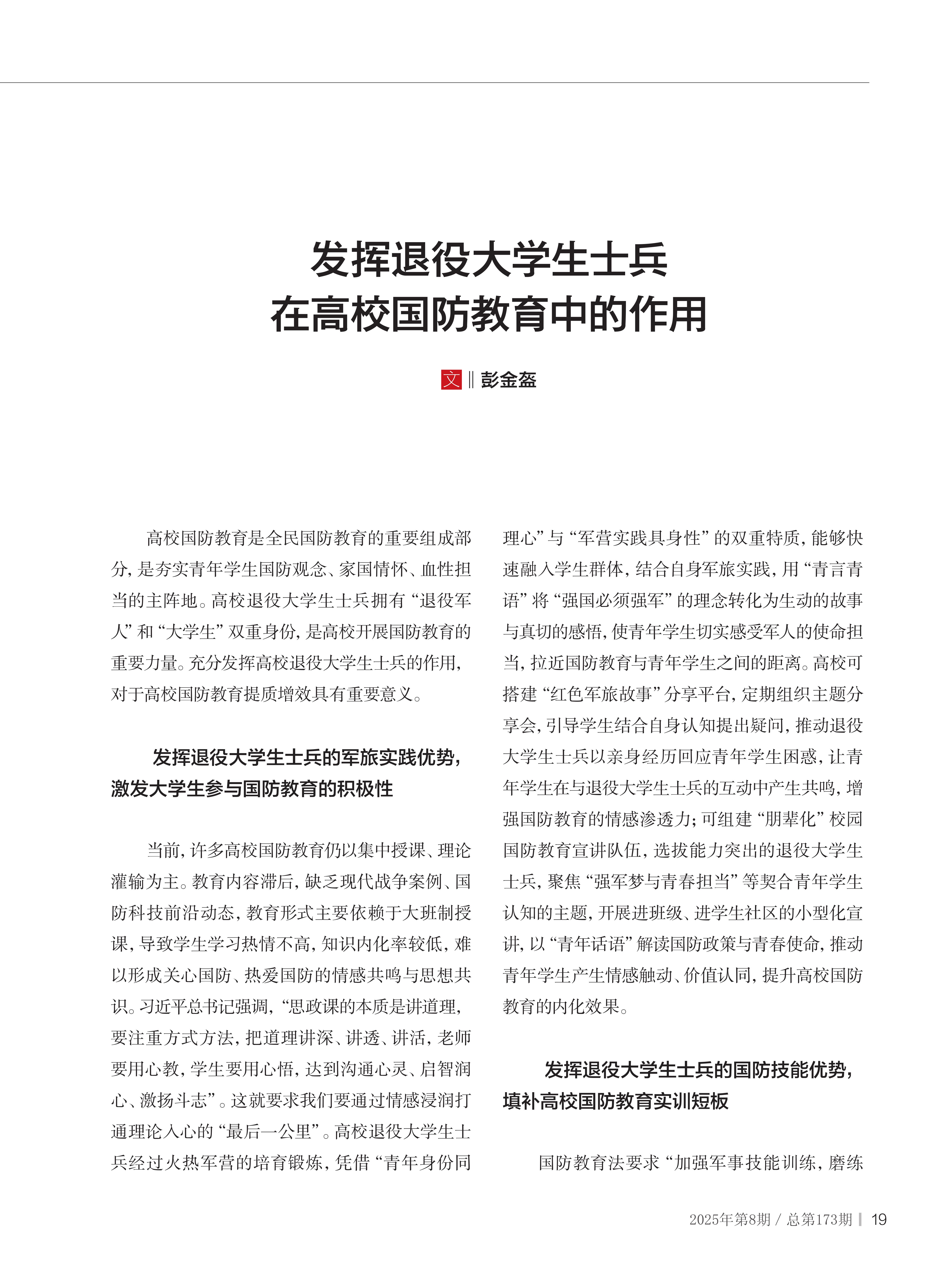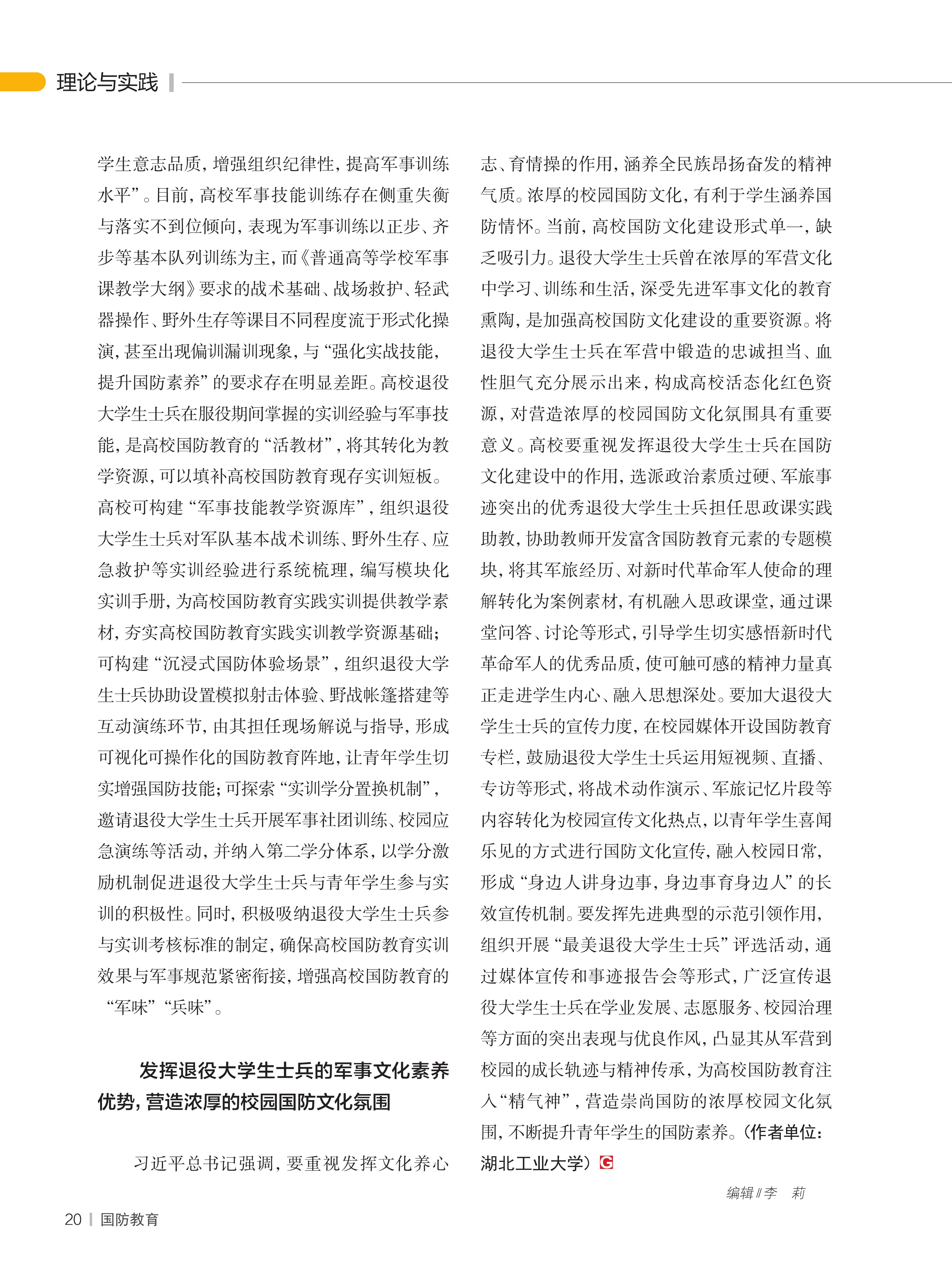 發(fā)揮退役大學(xué)生士兵在高校國防教育中的作用