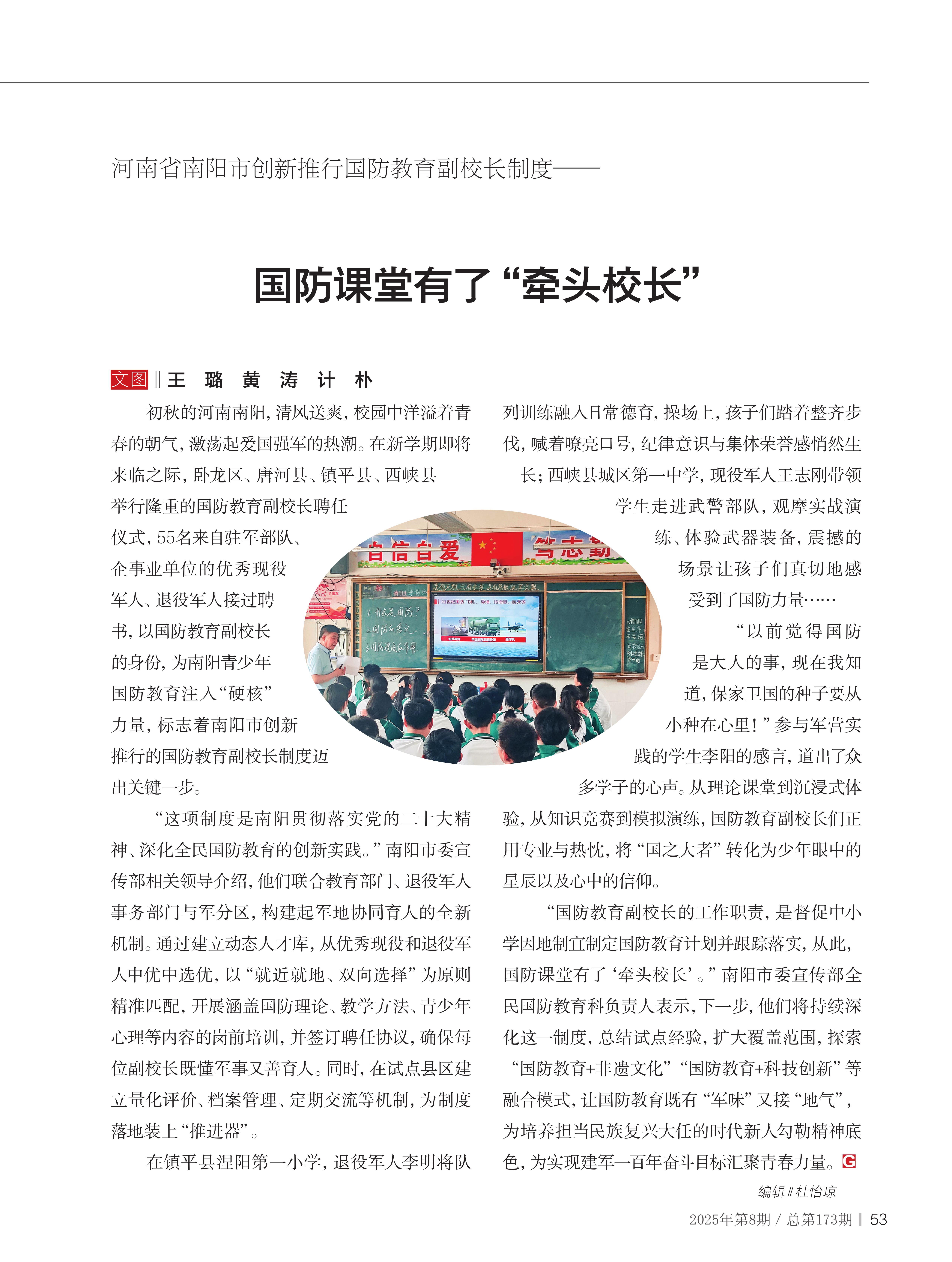 河南省南陽市創(chuàng)新推行國防教育副校長制度——