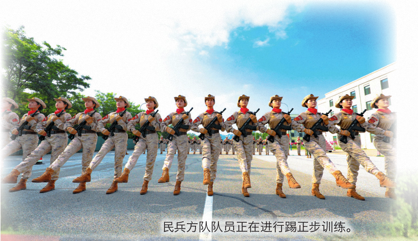 我們民兵方隊采用腳跟至腳尖依次著地的步法,腳跟叩擊地面的聲響就是民兵方隊的“節(jié)拍器”。訓練期間,我始終處于方隊最前方,整個方隊隊員全部依據(jù)我的腳步調(diào)整節(jié)奏、統(tǒng)一動作。普通隊員出現(xiàn)失誤,教練員通常稍加提醒即可;但身為領隊,我的任何一點偏差都會直接影響整個方隊的訓練效果,因此我所承受的壓力更大,被批評也是常有的事。