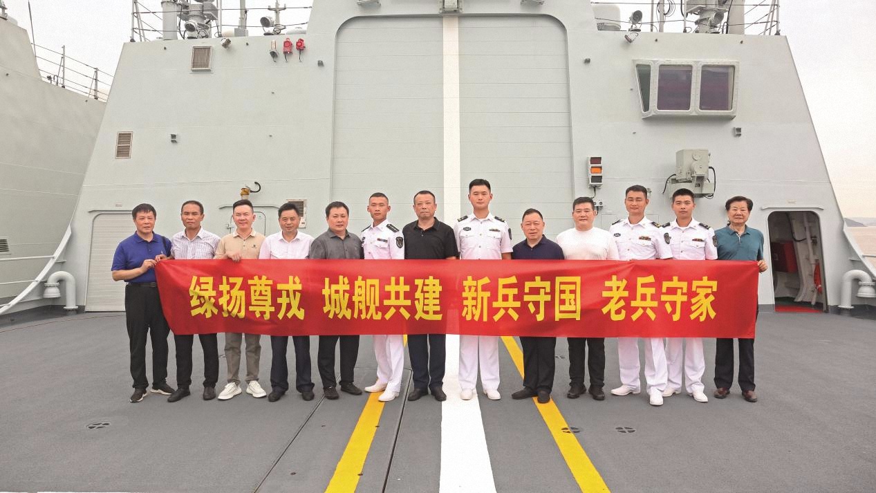 揚州市軍地領(lǐng)導來到揚州艦開展“城艦共建”雙擁共建活動。(攝影/陳 燦)