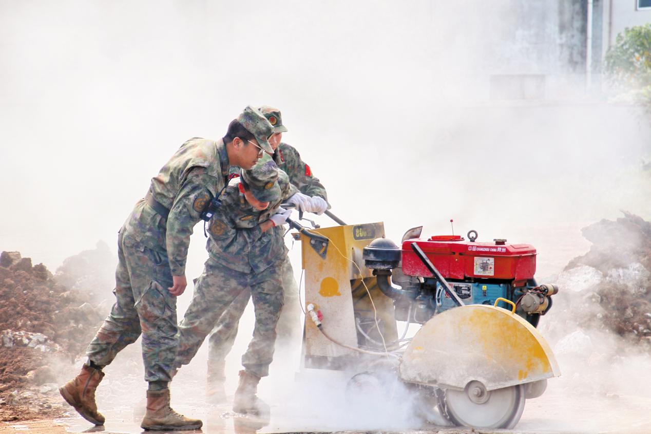 正定縣人武部組織民兵專業(yè)分隊與空軍某場站官兵進行道路搶修搶建聯(lián)演聯(lián)訓。(攝影/王雙豹)