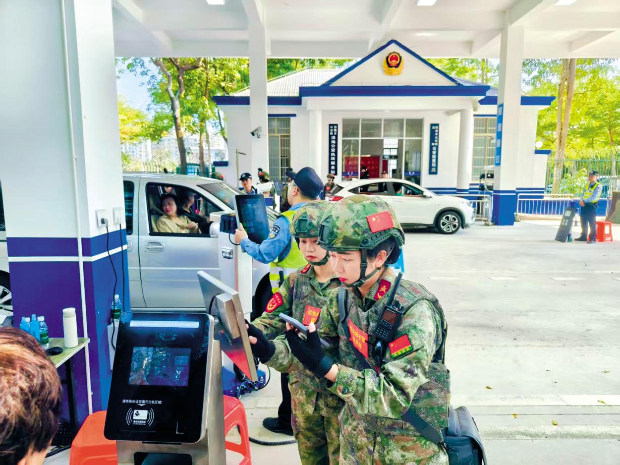 紅色娘子軍民兵連女民兵在博鰲亞洲論壇2025年年會(huì)舉行期間對(duì)過(guò)往車(chē)輛進(jìn)行安檢。