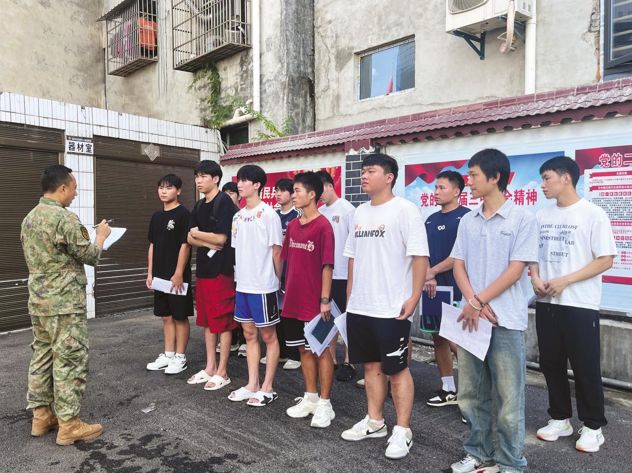 尹博(左一)正在組織應(yīng)征青年進行初檢初審。