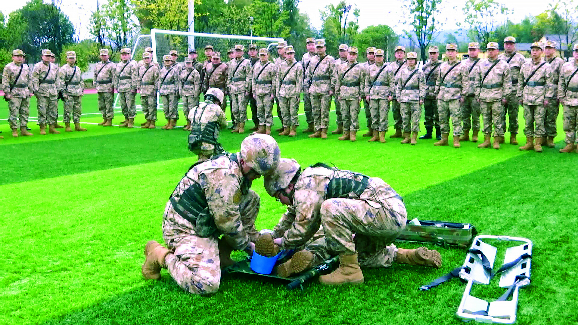 江西省軍區(qū)組織文職人員進(jìn)行戰(zhàn)場(chǎng)救護(hù)課目訓(xùn)練。(攝影/顧 浩)