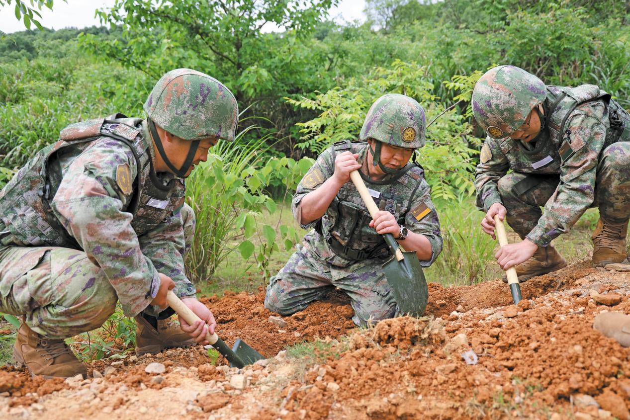 宜春軍分區(qū)組織文職人員進(jìn)行防御工事構(gòu)筑課目訓(xùn)練。(攝影/堯新穎)
