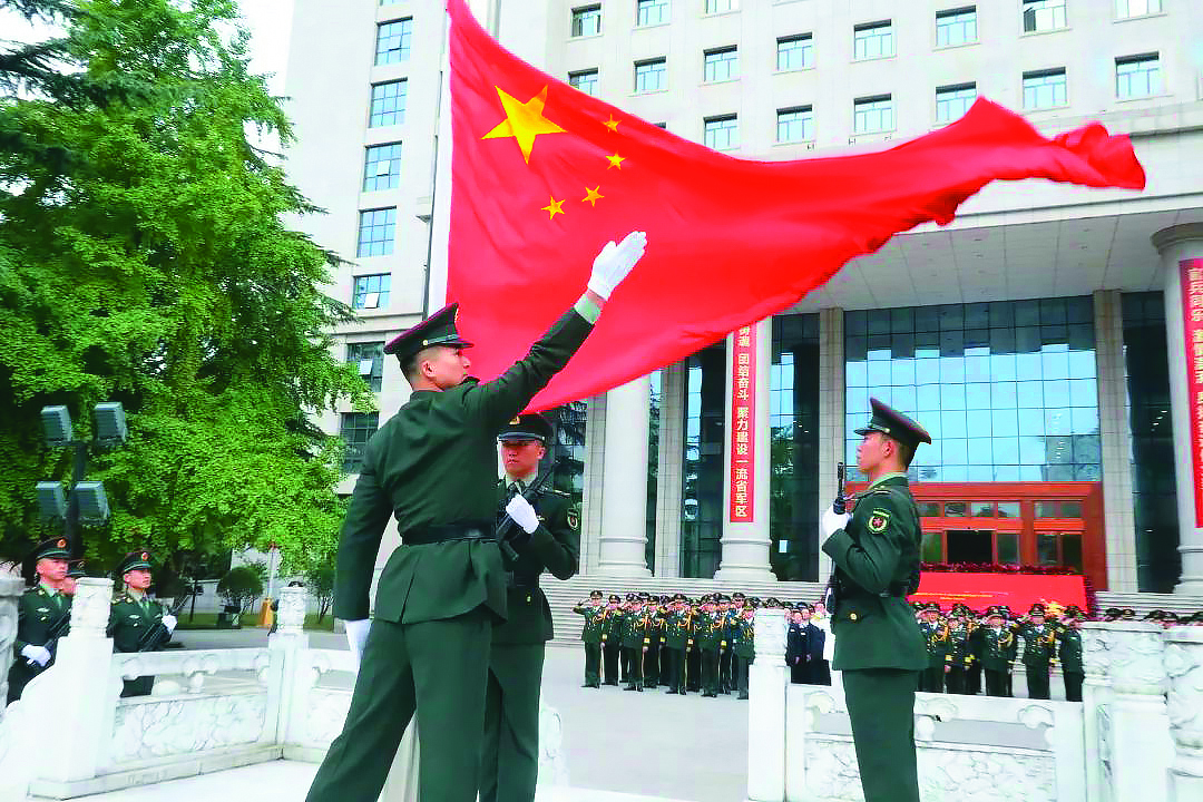 陜西省軍區(qū)機(jī)關(guān)及直屬單位隆重舉行升國(guó)旗儀式。(攝影/王武?。?/span>