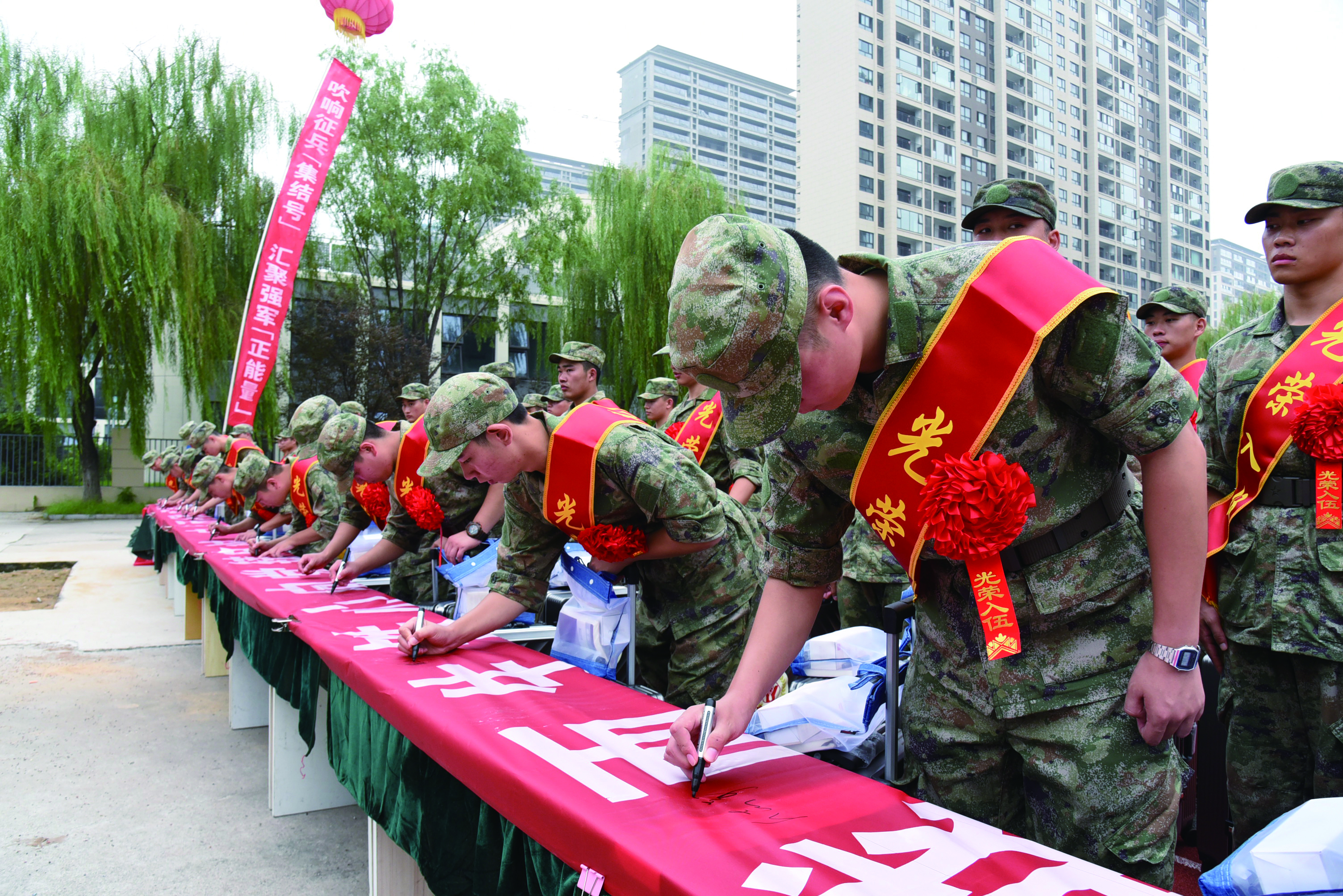 江蘇省宿遷市軍地聯(lián)合組織新兵入伍歡送暨“國(guó)防教育進(jìn)校園”活動(dòng)。(攝影/沈 翔)