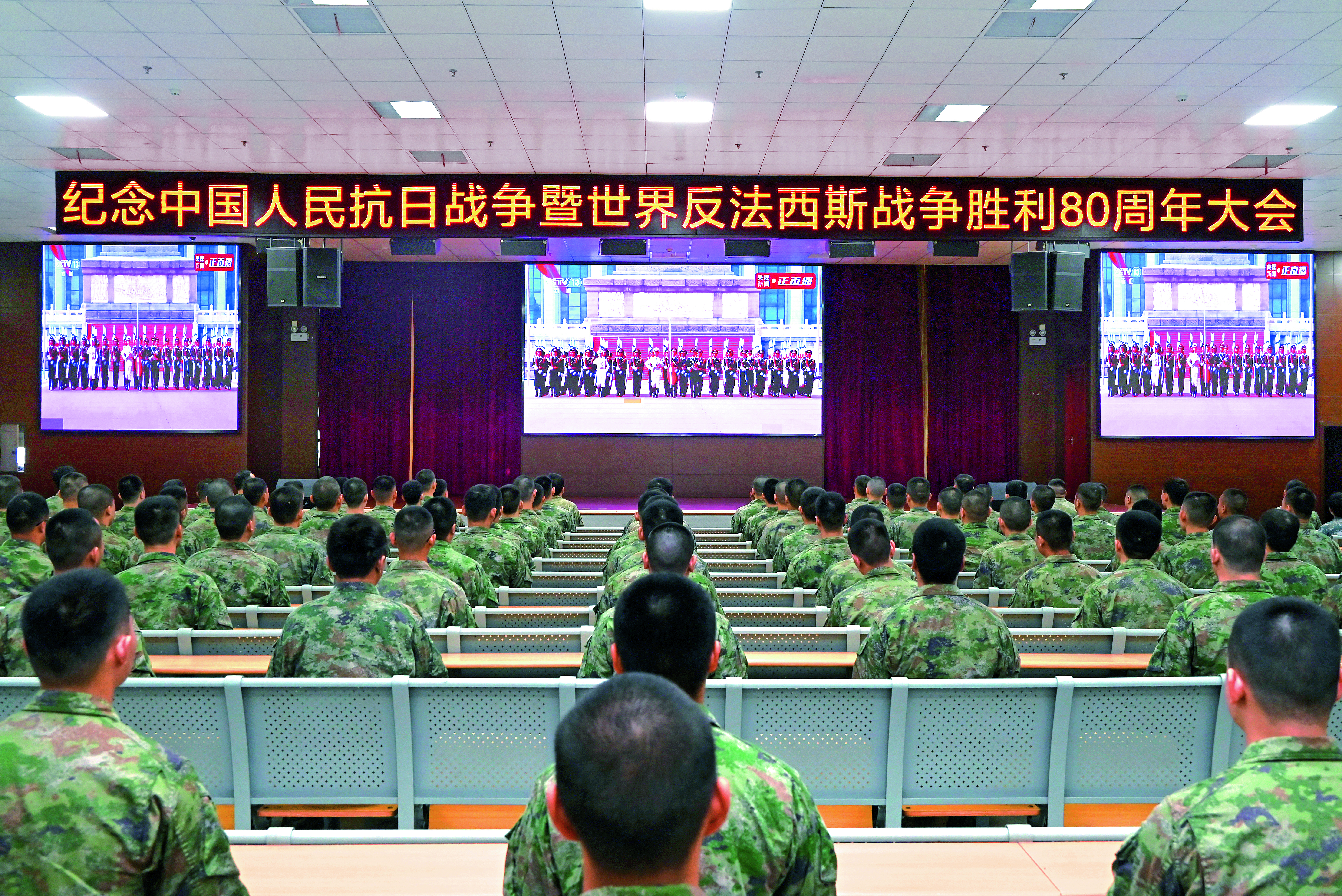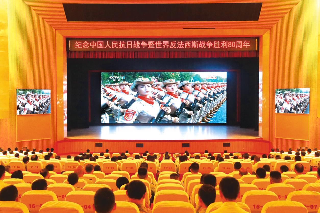 福建省軍區(qū)組織官兵和文職人員集中收看紀念中國人民抗日戰(zhàn)爭暨世界反法西斯戰(zhàn)爭勝利80周年大會直播盛況。(攝影/徐文濤)