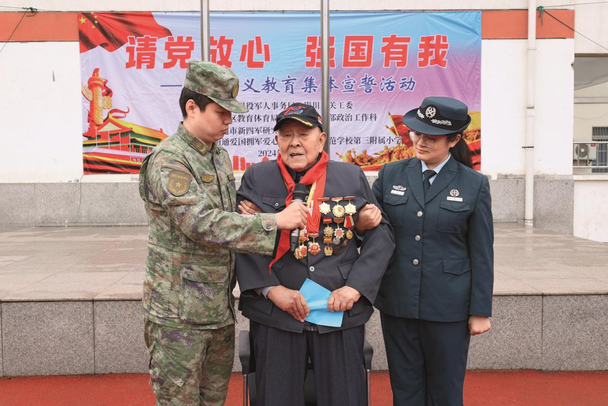 劉錫昌(居中)受邀參加南通市崇川區(qū)人武部主題教育活動并分享自己曾經(jīng)的參戰(zhàn)經(jīng)歷。(攝影/袁文燕)