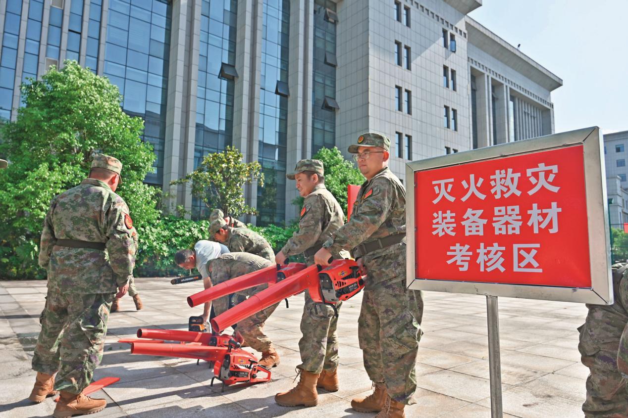 左權(quán)民兵應(yīng)急連組織民兵進(jìn)行滅火救災(zāi)裝備器材操作訓(xùn)練考核。