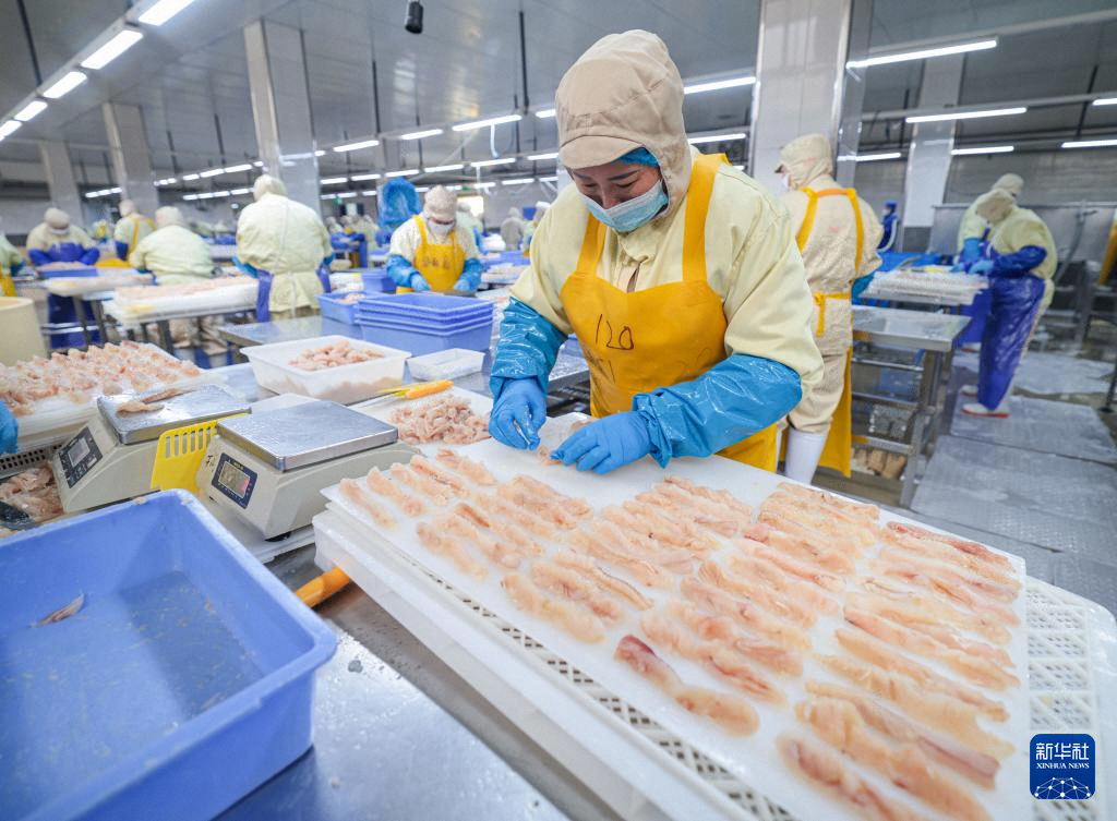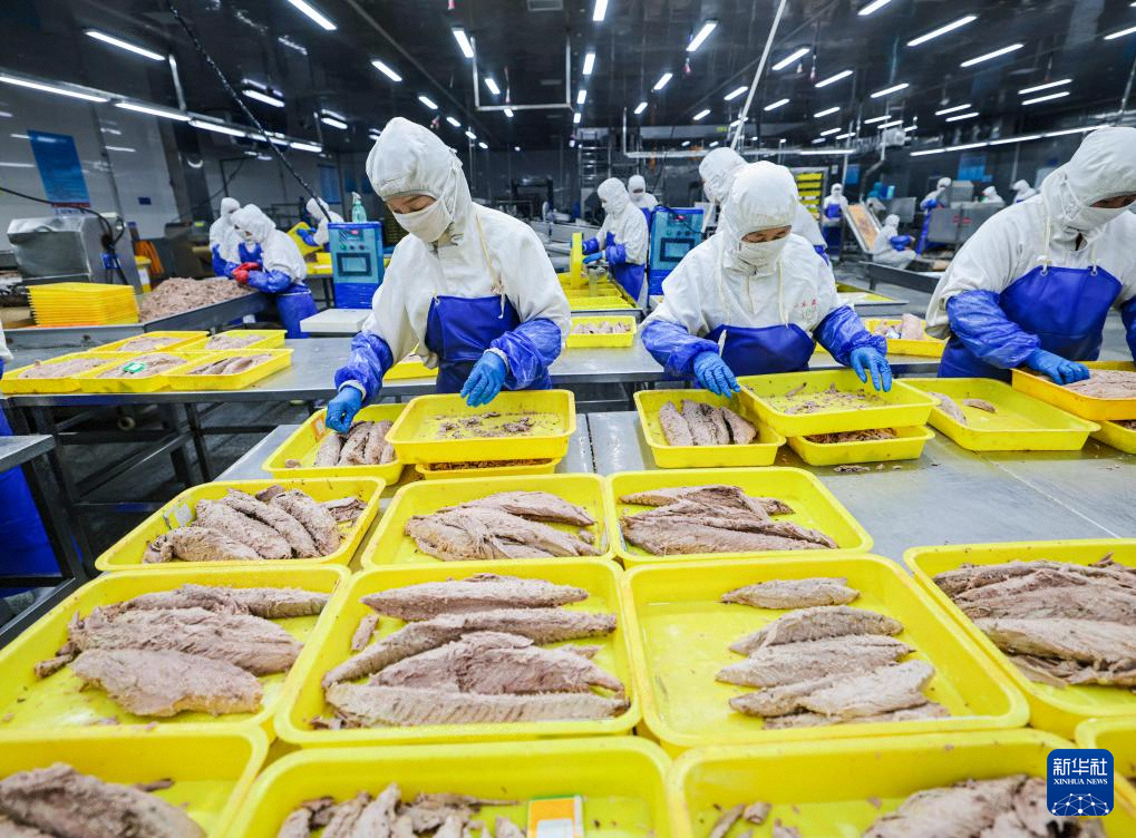 11月10日,山東省榮成市俚島鎮(zhèn)一家水產品加工企業(yè)的工人在加工鱈魚制品。新華社發(fā)(李信君 攝)