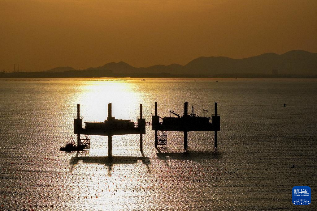 11月10日拍攝的山東省青島市即墨區(qū)金口鎮(zhèn)丁字灣海域養(yǎng)殖區(qū)(無人機照片)。新華社發(fā)(梁孝鵬 攝)