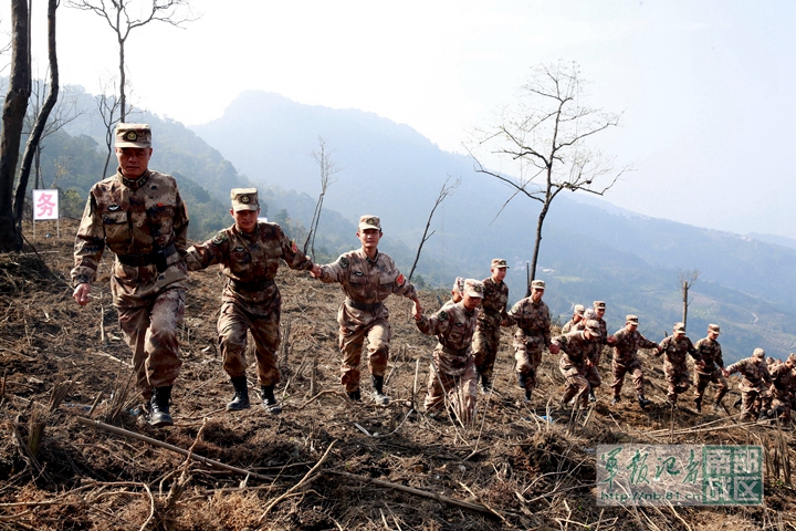 移交儀式開始后,官兵們手拉手排成一排,徒步從雷場一側進入,仔細進行踏勘檢測。根據國際慣例,能將一片雷場中的70%雷障清除,就可視為成功完成清排任務。但云南省軍區(qū)排雷官兵卻立誓:將雷障100%清除干凈。當天,他們徒步走過雷場的每個角落,證明這塊土地上已不存在任何殘存地雷。