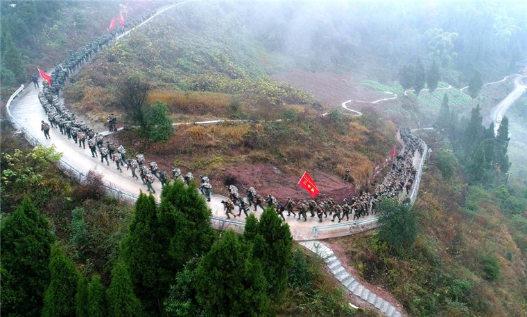 武警重慶總隊(duì)官兵進(jìn)行冬季野營拉練(1月3日攝)。新華社發(fā)(曹峰 攝)