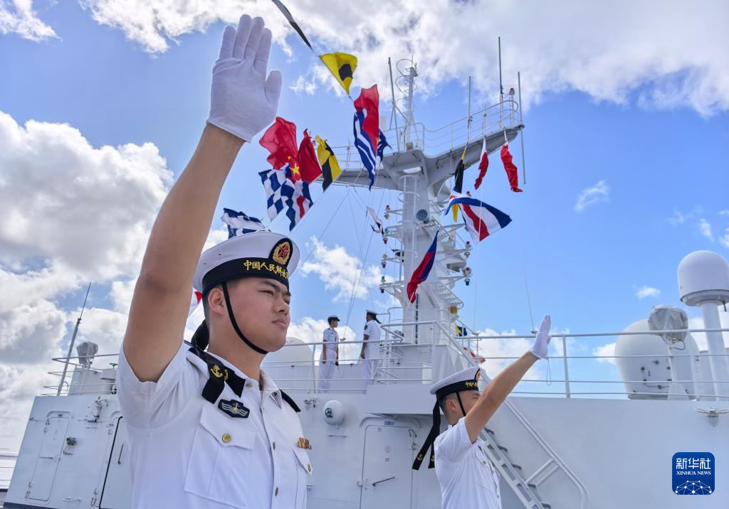 10月13日,執(zhí)行“和諧使命-2025”任務(wù)的中國(guó)海軍“絲路方舟”號(hào)醫(yī)院船抵達(dá)湯加努庫(kù)阿洛法港。這是醫(yī)院船官兵向歡迎人群揮手。新華社發(fā)(崔曉洋 攝)