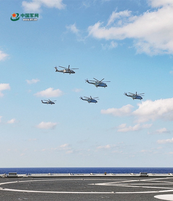 艦載直升機(jī)飛赴訓(xùn)練空域。