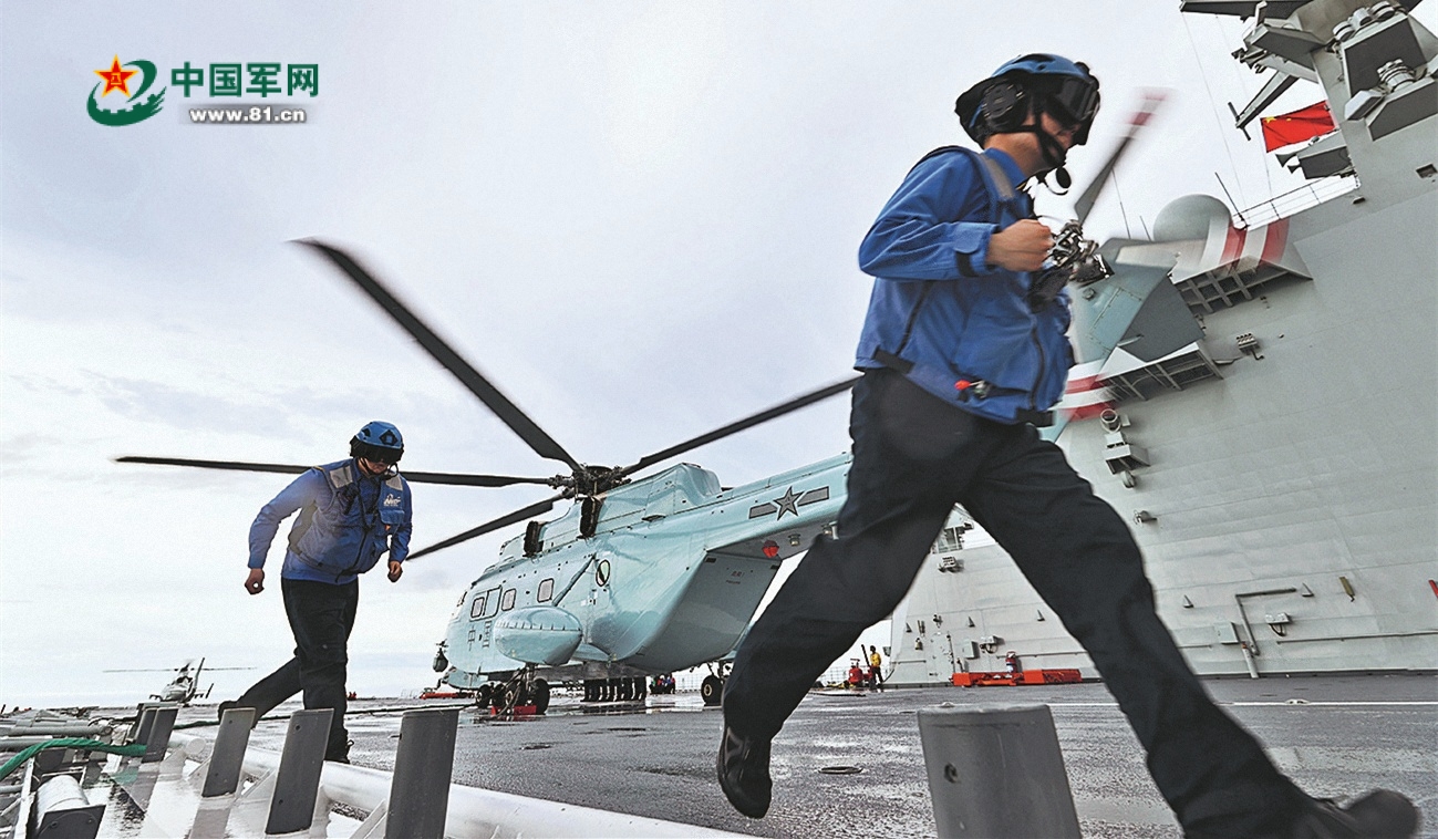 “艦載直升機(jī)起降部署!”接到命令,艦載直升機(jī)轉(zhuǎn)運(yùn)小組快速將艦載直升機(jī)轉(zhuǎn)運(yùn)至甲板。鐵翼飛旋,數(shù)架直升機(jī)騰空而起,新一輪訓(xùn)練在海天之間展開(kāi)。