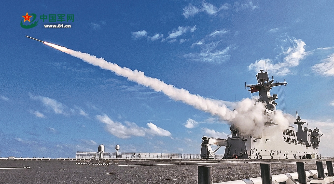 “‘?dāng)硨?dǎo)彈’來(lái)襲!”戰(zhàn)斗警報(bào)驟然響起,編隊(duì)各艦快速機(jī)動(dòng),占領(lǐng)有利陣位。作戰(zhàn)指揮室內(nèi),口令聲此起彼伏,屏幕上各類作戰(zhàn)數(shù)據(jù)不斷閃爍,雷達(dá)戰(zhàn)位死死“咬”住目標(biāo)?!鞍l(fā)射!”指揮員一聲令下,導(dǎo)彈呼嘯而出,成功擊毀來(lái)襲目標(biāo)。