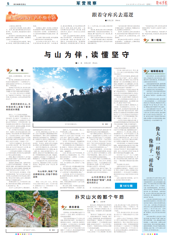 這群年輕的官兵守著山,這里的大山也默默托舉著他們。訓(xùn)練場上的汗水、哨位上的堅(jiān)守、球場上的吶喊、俱樂部里的歌聲……所有這些平凡的瞬間,都深深烙印在這片他們用青春守護(hù)的土地上。