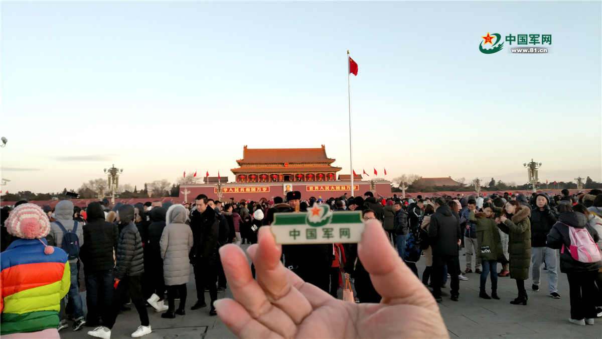 2018年1月1日清晨,北京天安門廣場(chǎng)舉行隆重的升國(guó)旗儀式。來(lái)自全國(guó)各地的數(shù)萬(wàn)名群眾現(xiàn)場(chǎng)觀看升國(guó)旗儀式,迎接2018年的到來(lái)?,F(xiàn)場(chǎng)觀眾看到中國(guó)軍網(wǎng)記者身上佩戴的胸牌后,紛紛要求和“中國(guó)軍網(wǎng)”胸牌拍照留念。中國(guó)軍網(wǎng)記者孫智英 攝