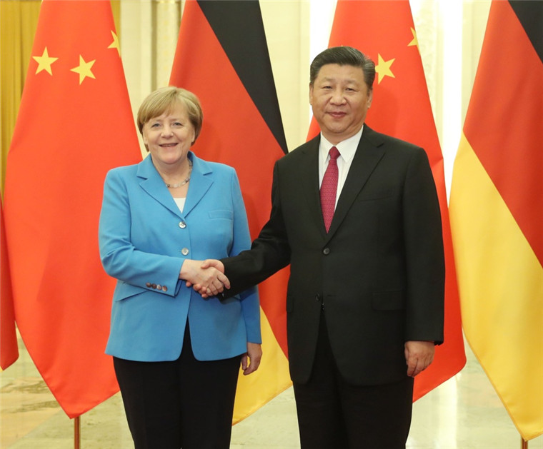 習近平歡迎默克爾第11次訪華,贊賞默克爾對中德關(guān)系的高度重視。習近平指出,2014年中德建立全方位戰(zhàn)略伙伴關(guān)系以來,兩國關(guān)系得到長足發(fā)展,合作廣度和深度達到前所未有的水平。中方愿同德方共同努力,推動雙邊關(guān)系不斷邁上新高度。