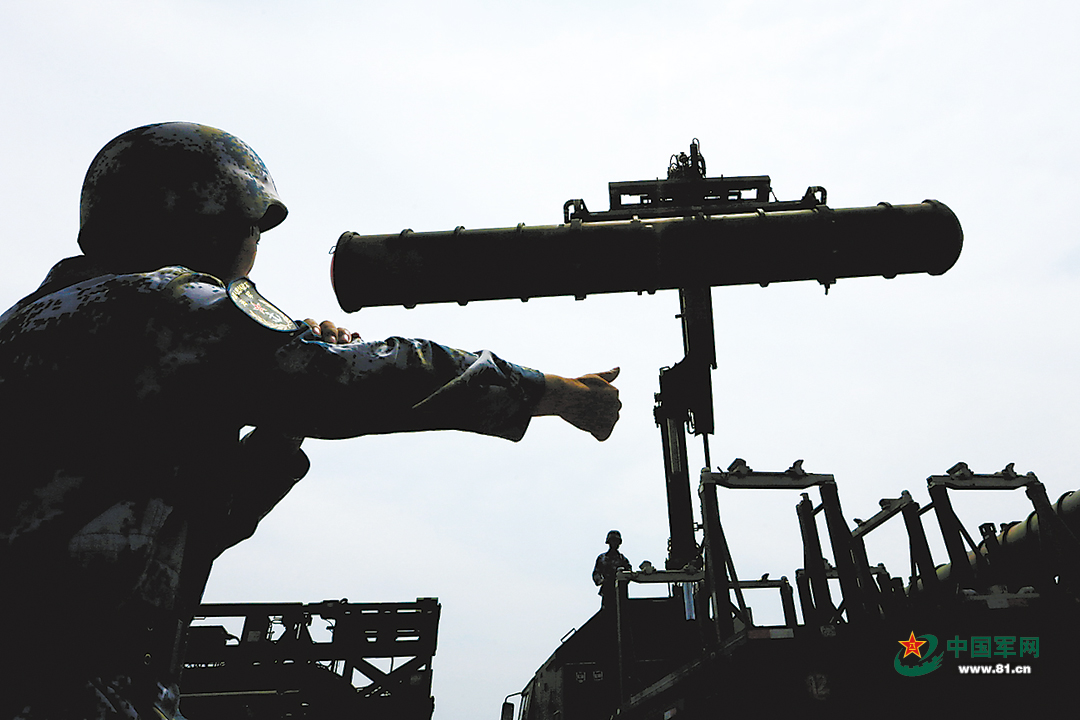 海軍某防空營(yíng)快速吊裝導(dǎo)彈。