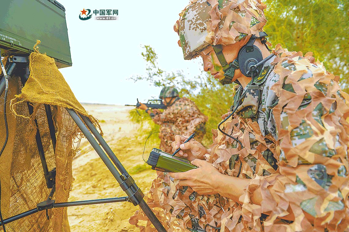 分散編組、小群多路、穿插前進……8月14日,陸軍第79集團軍某合成旅偵察分隊連續(xù)行軍9個多小時,橫穿沙漠20余公里,處置各種“敵”情10余起,最終成功引導(dǎo)炮兵分隊對“敵”目標(biāo)實施精確打擊。這是該旅在沙漠復(fù)雜地域開展實戰(zhàn)化偵察破襲演練的一幕。