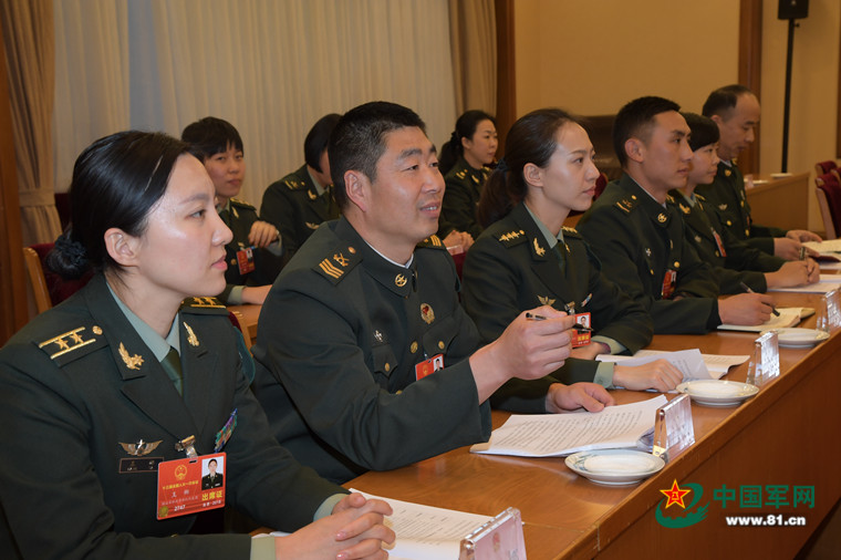 3月6日下午,解放軍和武警部隊(duì)代表團(tuán)舉行小組會(huì)議。圖為軍隊(duì)人大代表認(rèn)真聆聽發(fā)言。解放軍報(bào)記者 馮凱旋 攝