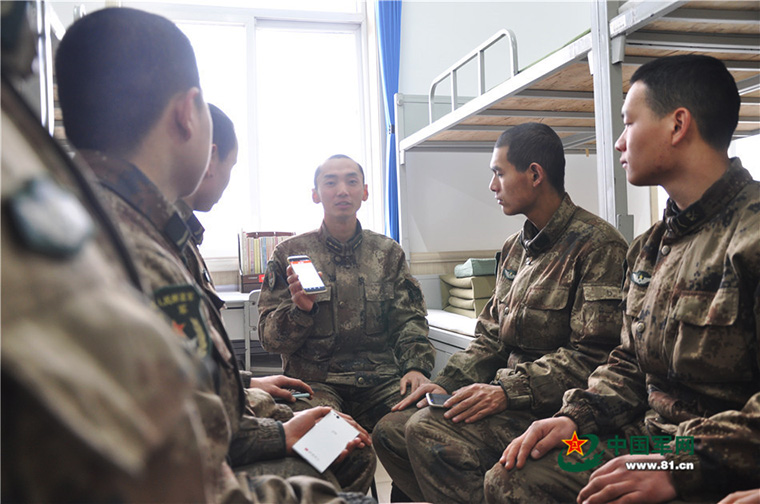 班長在宿舍給新兵們講理論,“學(xué)習(xí)軍營”成了好幫手。