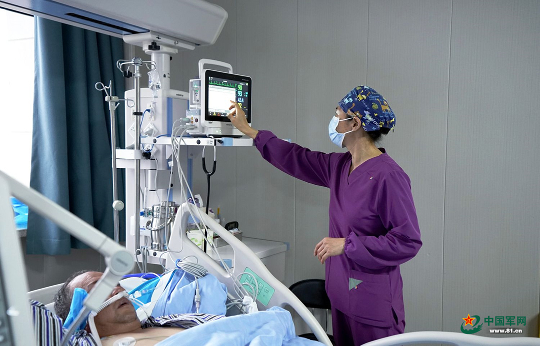 張瑛查看患者監(jiān)測(cè)儀器數(shù)據(jù)。中國(guó)軍網(wǎng)記者 林詩(shī)清 攝