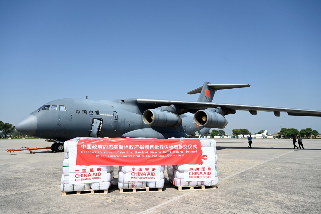 由中國政府捐贈的首批抗洪救災(zāi)緊急物資28日運(yùn)抵巴基斯坦。