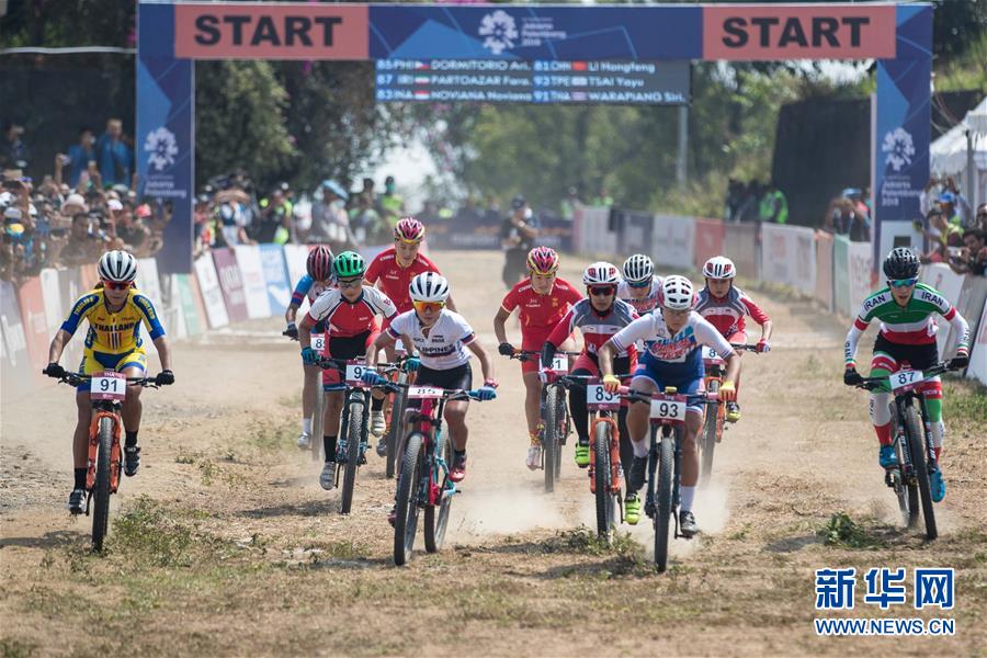 8月21日,選手們在比賽中出發(fā)。 當日,在第18屆亞運會山地自行車女子越野比賽中,中國選手姚變娃以1小時20分17秒的成績獲得冠軍,李洪鳳以1小時24分56秒的成績獲得亞軍。 新華社記者吳壯攝