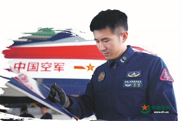 他叫衛(wèi)星,是空軍八一飛行表演隊的一名軍械員。在今年閱兵任務中,他擔負的一項重要職責就是保障表演機能夠拉出漂亮的彩煙。
