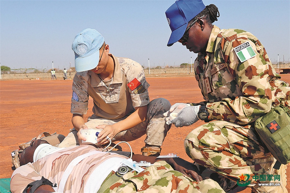 我第2批赴阿卜耶伊維和快反分隊(duì)日前參加了聯(lián)合國(guó)阿卜耶伊臨時(shí)安全部隊(duì)(聯(lián)阿安全部隊(duì))司令部組織的航空應(yīng)急演練,有效檢驗(yàn)了緊急情況下分隊(duì)的快速反應(yīng)和協(xié)同處置能力。演練中,分隊(duì)官兵的表現(xiàn)得到聯(lián)阿安全部隊(duì)與維和友軍的高度評(píng)價(jià)。圖為參演人員救治“傷員”。韓瑞田攝