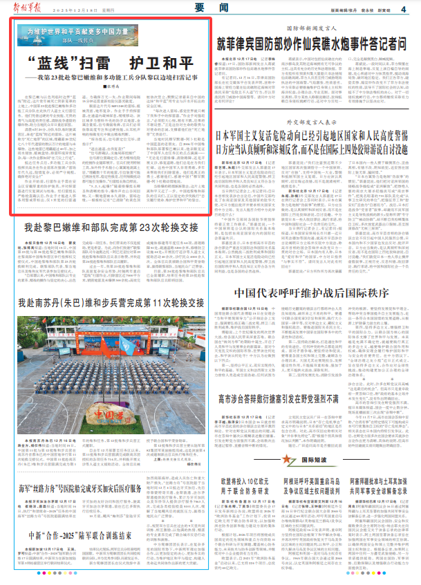 當(dāng)排爆的硝煙漸漸散去,這片土地離和平又近了一步。中國赴黎維和部隊(duì)的官兵們,正以堅(jiān)定的步伐踐行“忠實(shí)履行使命、維護(hù)世界和平”的誓言。