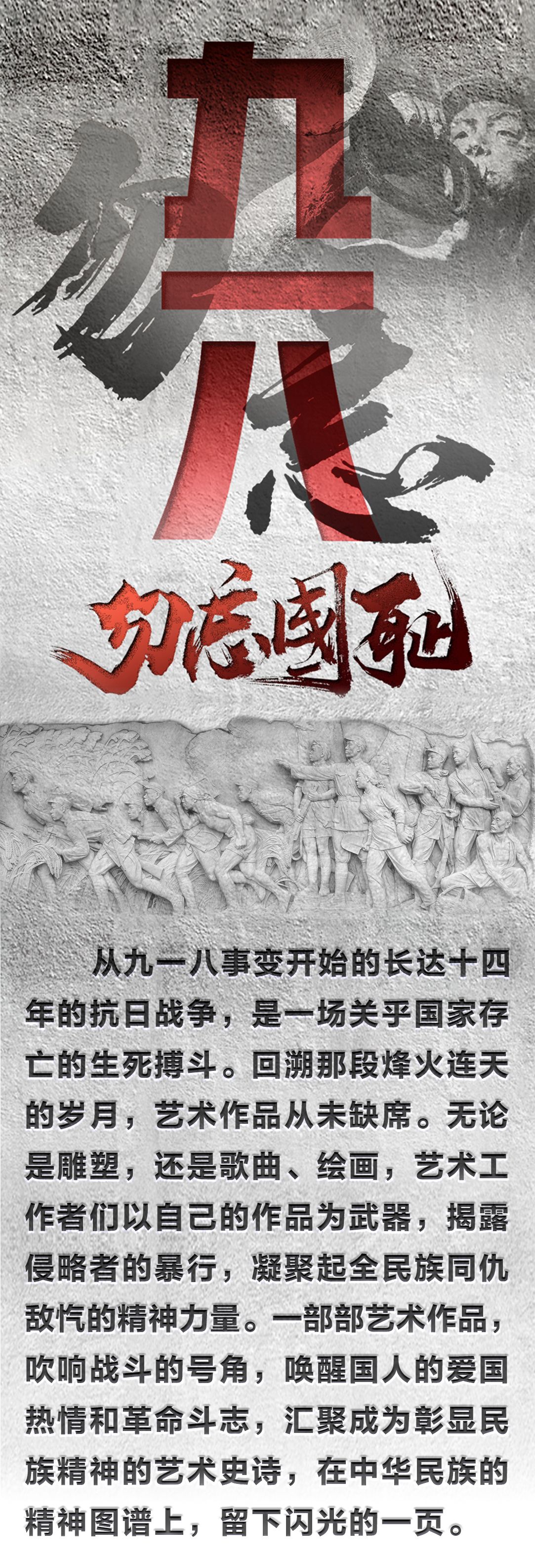 ↓雕塑家賀中令介紹九一八“殘歷碑”設(shè)計(jì)歷程