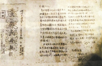 《鴨綠江來信》中黃繼光寫給母親的家書 資料圖片