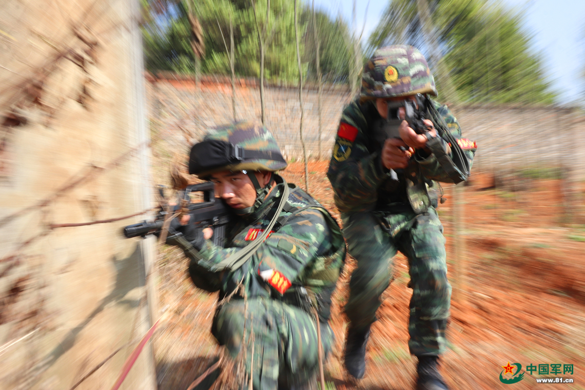 特戰(zhàn)隊員交互掩護前進(jìn)。