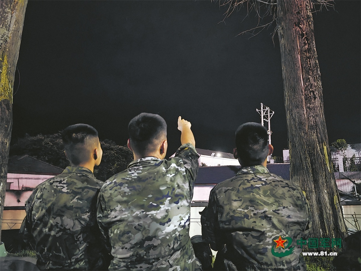 執(zhí)勤結(jié)束,戰(zhàn)士們仰望夜空的星辰。