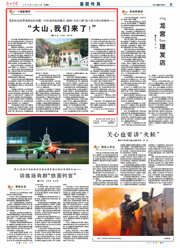 “大山六班!”“到!”溫班長(zhǎng)聲音洪亮點(diǎn)名,戰(zhàn)士們齊聲應(yīng)答。聲音在群山間久久回蕩,既是老兵向大山告別,也是新兵向大山問好。