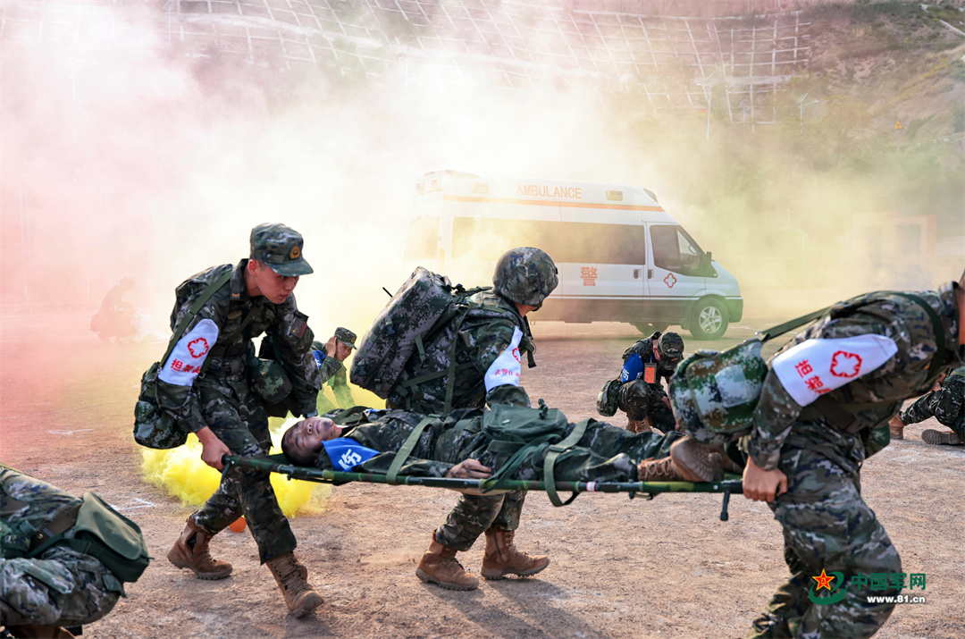 “前方陣地遭‘?dāng)场驌?,有人員受傷,命你部立即前出救治!”野戰(zhàn)醫(yī)療隊(duì)分類后送組成員聞令而動(dòng),迅速前出至傷員所在區(qū)域展開緊急救治……近日,武警甘肅總隊(duì)醫(yī)院一場(chǎng)衛(wèi)勤專業(yè)全要素實(shí)戰(zhàn)化演練在某訓(xùn)練場(chǎng)打響。