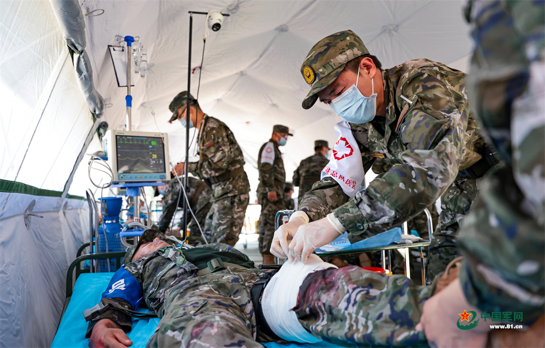 此次演練著眼提升戰(zhàn)場(chǎng)救治能力,根據(jù)不同作戰(zhàn)任務(wù)、戰(zhàn)斗進(jìn)程、戰(zhàn)傷特點(diǎn),圍繞“緊急拉動(dòng)與機(jī)動(dòng)投送、野戰(zhàn)醫(yī)療隊(duì)開設(shè)與展開、批量傷員救治”等方面內(nèi)容展開,設(shè)置了包括氣胸、槍擊傷、眼球傷在內(nèi)等20余種傷情。該總隊(duì)醫(yī)院領(lǐng)導(dǎo)介紹,此次演練要求野戰(zhàn)醫(yī)療隊(duì)隊(duì)員不僅要具備精湛的救護(hù)技術(shù),更要掌握戰(zhàn)術(shù)隊(duì)形、戰(zhàn)場(chǎng)防護(hù)、隱蔽接近等戰(zhàn)斗技能,進(jìn)一步錘煉了野戰(zhàn)衛(wèi)勤保障能力。