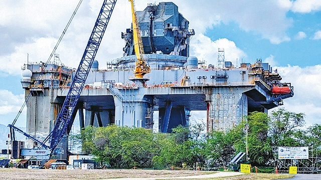 SBX-1是美國導(dǎo)彈防御系統(tǒng)的重要組成部分,安裝在一個移動式遠(yuǎn)洋半潛平臺上。該平臺原本是用于石油開采的承重甲板平臺,經(jīng)過改裝后用作雷達(dá)基座。2005年,SBX-1在該平臺上的安裝工作完成,隨后巨大的白色雷達(dá)罩也安裝到位,用于保護(hù)雷達(dá)免受自然環(huán)境侵蝕。2006年,SBX-1結(jié)束海試后被運(yùn)往夏威夷珍珠港,正式作為美國彈道導(dǎo)彈防御系統(tǒng)的一部分在太平洋地區(qū)部署,主要用于探測和跟蹤彈道導(dǎo)彈。