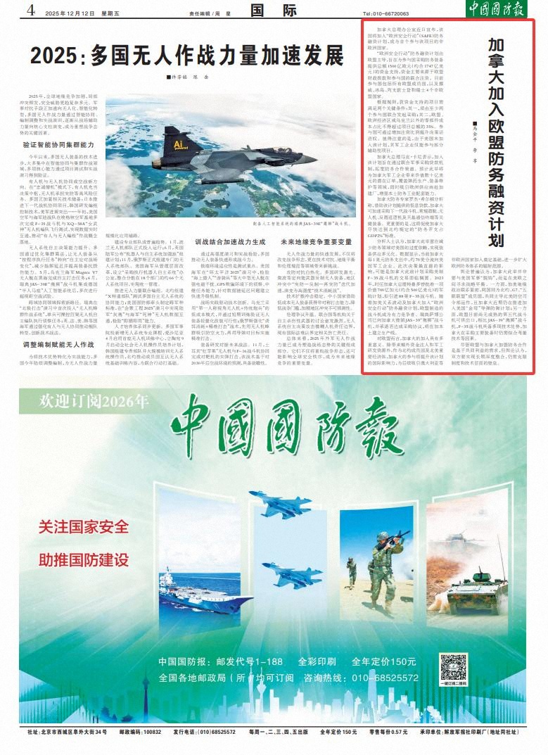 加拿大防務專家羅杰·希爾頓分析稱,借助該計劃提供的低息貸款,加拿大可加速采購下一代戰(zhàn)斗機、常規(guī)潛艇、無人機、反潛巡邏機及天基通信終端等關鍵裝備。更重要的是,這將促使加拿大盡快達到北約規(guī)定的“防務開支占GDP2%”標準。