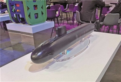 英國(guó)BAE系統(tǒng)公司展出的SSN-AUKUS型核潛艇模型。
