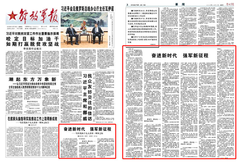 2017年10月,一樣的金秋時(shí)節(jié),黨的十九大勝利召開(kāi)。這是在全面建成小康社會(huì)決勝階段、中國(guó)特色社會(huì)主義進(jìn)入新時(shí)代的關(guān)鍵時(shí)期召開(kāi)的一次十分重要的大會(huì),在我黨我國(guó)我軍發(fā)展進(jìn)程中,注定成為一座影響深遠(yuǎn)的里程碑。