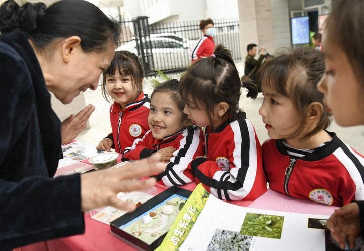 2024年4月16日,在新疆烏魯木齊市天山區(qū)南灣街街道,昌樂園幼兒園的小朋友在老師的講解下了解春蠶的生長過程。谷雨節(jié)氣將至,烏魯木齊市一些社區(qū)紛紛開展形式多樣的主題活動,讓市民了解有關(guān)谷雨節(jié)氣的知識,體驗傳統(tǒng)文化的魅力。