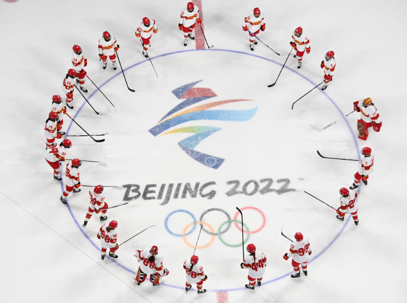 △北京2022年冬奧會是迄今女性參賽比例最高、參與項(xiàng)目最多的一屆冬奧會。圖為中國國家女子冰球隊(duì)在賽場。